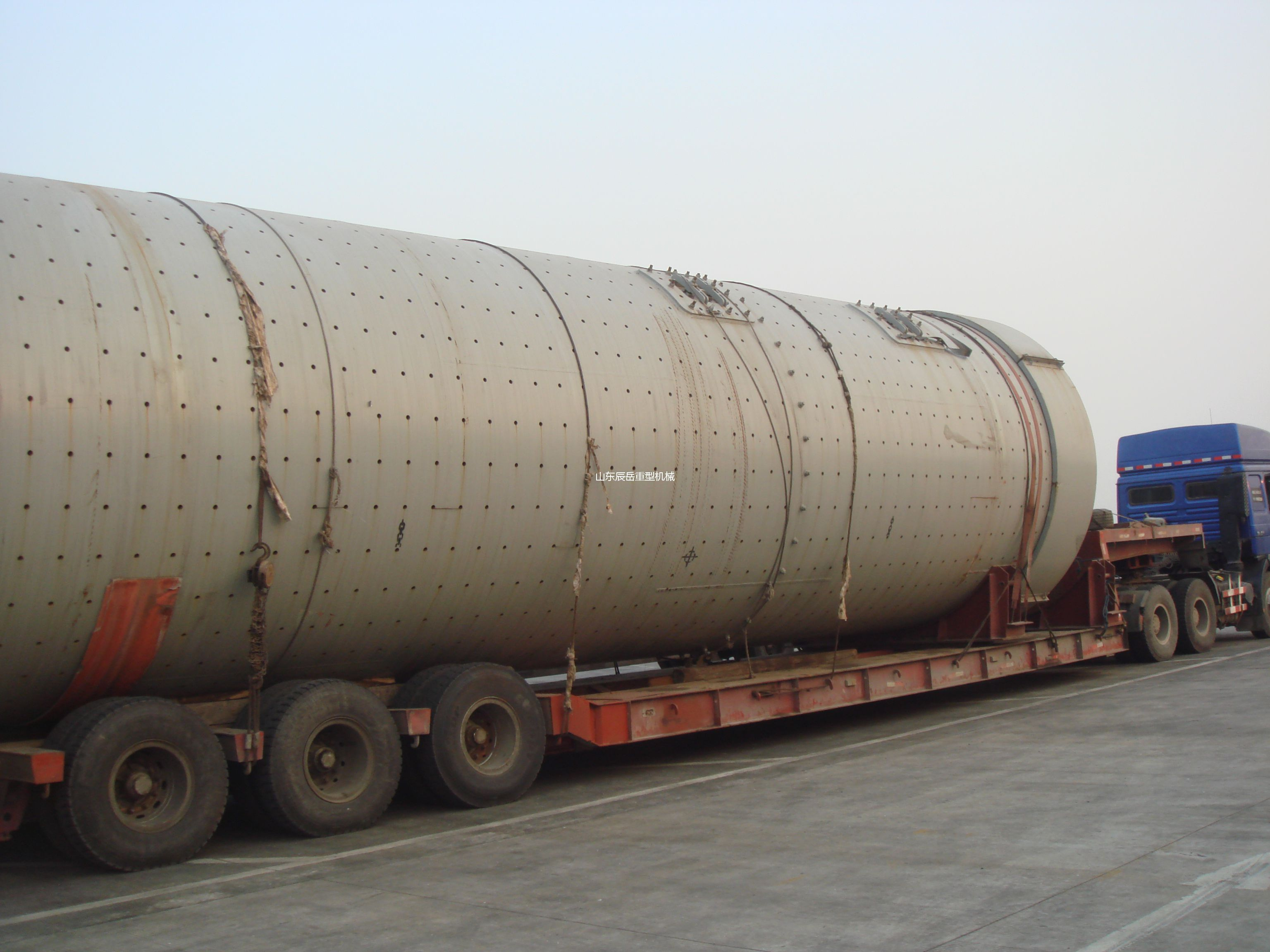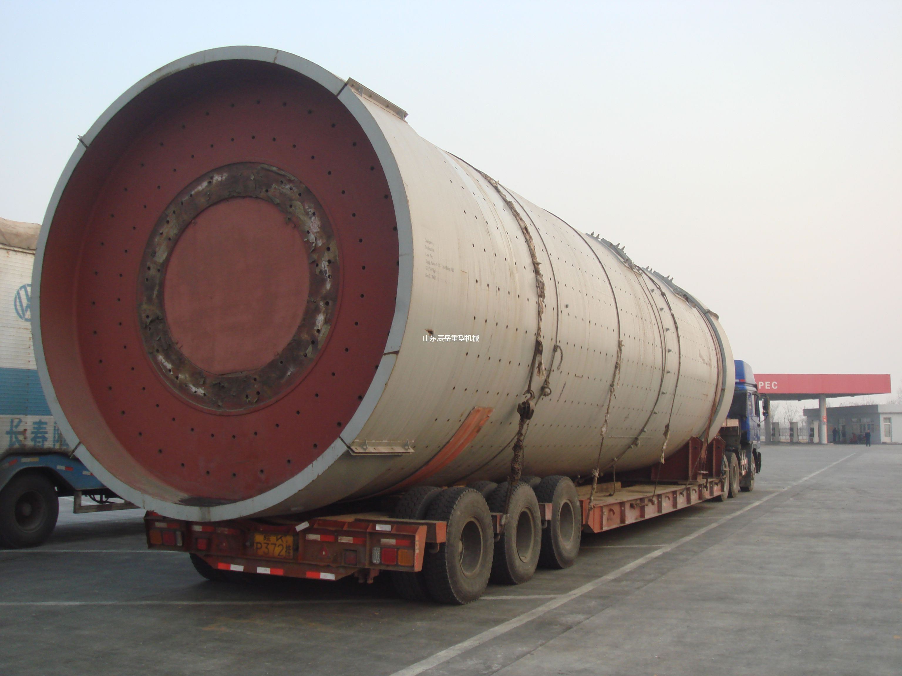 本機(jī)為筒形旋轉(zhuǎn)裝置,外沿齒輪傳動(dòng),兩倉,格子型球磨機(jī)。物料由進(jìn)料裝置經(jīng)入料中空軸螺旋均勻地進(jìn)入磨機(jī)一倉,該倉內(nèi)有階梯襯板或波紋襯板,內(nèi)裝不同規(guī)格鋼球,筒體轉(zhuǎn)動(dòng)產(chǎn)生離心力將鋼球帶到一定高度后落下,對(duì)物料產(chǎn)生重?fù)艉脱心プ饔谩N锪显谝粋}達(dá)到粗磨后,經(jīng)單層隔倉板進(jìn)入二倉,該倉內(nèi)鑲有平襯板,內(nèi)有鋼球,將物料進(jìn)一步研磨。粉狀物通過卸料箅板排出,完成粉磨作業(yè)。