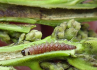 癥狀:薊馬是芒果產(chǎn)區(qū)梢期、花期和幼果期危害較為嚴(yán)重的害蟲之一。薊馬好吸食幼嫩組織。吸食果汁后,果表面起小疙瘩造成果皮粗糙,危害嚴(yán)重時(shí)候造成芒果失去商品性。危害較輕者也是芒果生產(chǎn)后期產(chǎn)生“露水斑”、“老年斑”的可能原因之一。