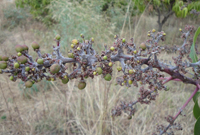 癥狀:是花期的主要病害,同時(shí)危害幼果、嫩葉,嚴(yán)重影響果實(shí)產(chǎn)量。該病主要為害花序、幼果和嫩葉。花序枝梗最容易受感染,梗上病斑褐色,病部常見白粉狀物,花梗環(huán)縊狀死亡,其上花朵、幼果隨之枯死脫落。嫩葉癥狀多在葉背,病葉常扭曲、畸形。幼果受害,果面出現(xiàn)近圓形的斑點(diǎn),嚴(yán)重時(shí)幼果全部被白粉狀物覆蓋,造成大量落果。