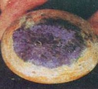 發(fā)生原因: 1、氣體原因。該病害的發(fā)生主要是受有害氣體污染的影響,特別是與二氧化硫的污染有關(guān)。表現(xiàn)在病果末端變黑變硬,果實(shí)過早成熟,無商品價(jià)值。該病病狀只出現(xiàn)在果的頂端,先在果頂出現(xiàn)淡黃色暈圈,逐漸發(fā)展為一淡褐色區(qū)域,并擴(kuò)大,變黑,最后完全覆蓋整個(gè)果頂部。隨著病情加重,黑色部分逐漸向果基方向延伸,占果實(shí)1/3~1/2后停止,果實(shí)其余部分仍保持正常顏色。病部組織失水萎縮、壞死,但不腐爛,且有堅(jiān)實(shí)感。靠近果頂部種胚褐變壞死,摘下的果實(shí)果柄處無乳汁溢出,果實(shí)采收后不能正常黃熟,不能銷售。此外,還有果肉部分木栓化;有些果肉部分呈“海綿狀”,有中空現(xiàn)象;有的果肉形成“多團(tuán)塊組織”,果肉中含有分散的白色團(tuán)塊;“米粒狀病”,在果肉中有米粒大小的傷疤,傷疤的四周有棉花狀物環(huán)繞等。以上這些癥狀,尚未檢出其危害的病原菌,均屬生理性病害的范疇。2、果實(shí)缺硼和鈣。